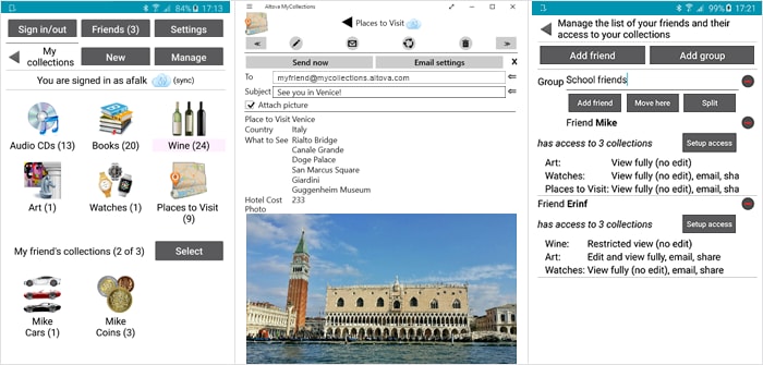 It’s easy to add friends and give them access to view and/or edit one or more of your collections. You can manage exactly which records and which details your friends can access, with fine-grained control over the information they can view or search for in each collection.