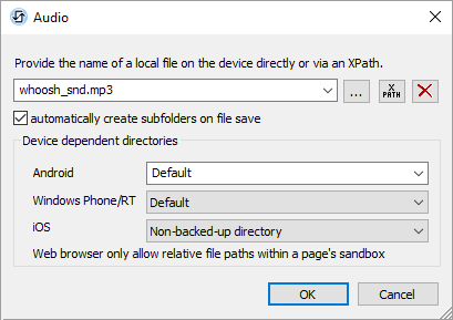 Developers have complete control over the cache file location for each mobile device OS. Clicking the button next to the cache file name opens the cache file dialog: