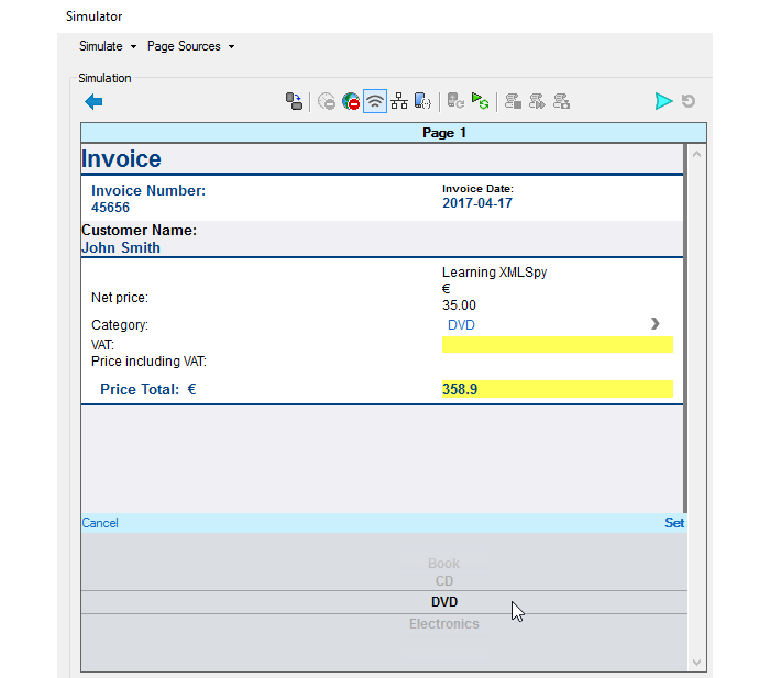 Let’s walk through an example using the Invoice example SPS file that ships with StyleVision, as this type of application is well suited for deploying on mobile devices or in a browser.