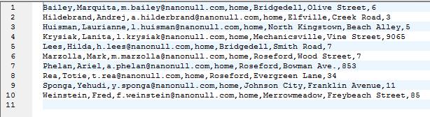 The final output of this database mapping is a text file in CSV format, and the result is further refined by the SQL-where/order component and its associated input. The input condition is the “where” portion of the SQL-where/order and requests home addresses only: