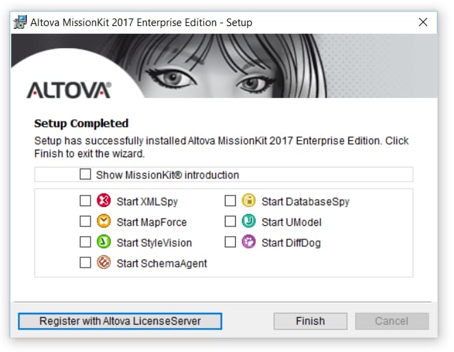 To make your life easier when deploying new versions of the Altova MissionKit software, you can even connect to a license server immediately when the installer has completed the installation process: