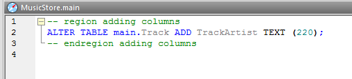 Note the plus sign next to the TrackArtist column name in the screenshot above. DatabaseSpy does not actually modify the database as we edit the diagram. Instead, DatabaseSpy automatically creates a database change script in a separate window.