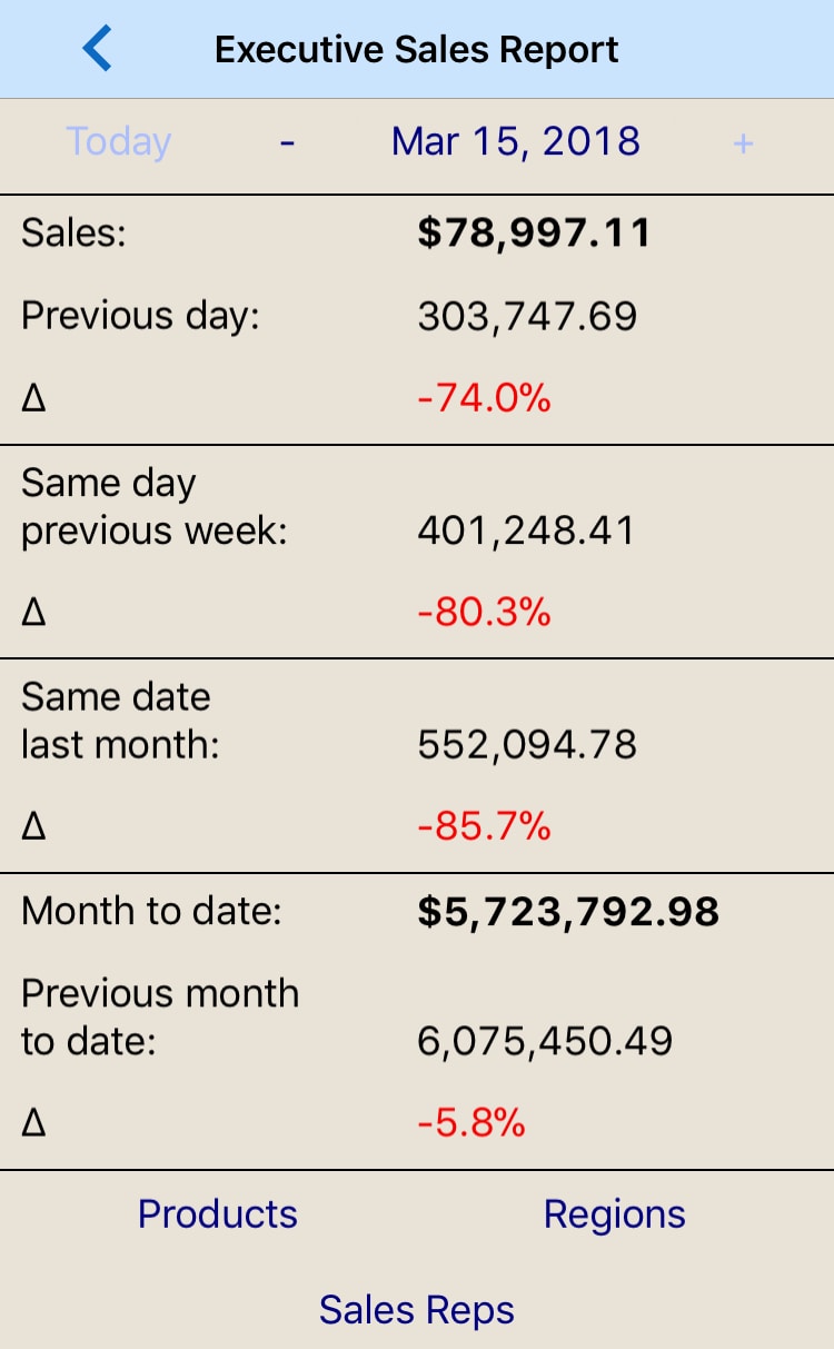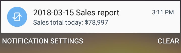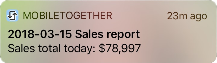 When any recipient taps the notification, the CompanySales app is launched, providing rich detail about the day’s sales.
