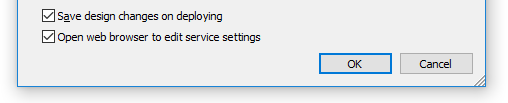 Services for backend servers for mobile apps are deployed via the Deploy option in the MobileTogether Designer File menu. The deployment dialog for services includes a special option to open the MobileTogether Server Web browser interface and define triggers that will execute the service: