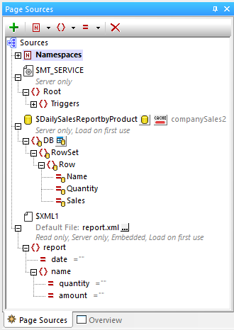 Our service will need a database query and an XML structure, as seen in the Page Sources screenshot below: