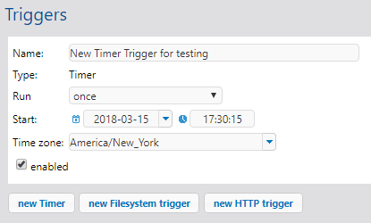 Three types of triggers can execute the service: timers, file system changes such as a watched hot folder or file, and HTTP triggers. For initial testing, we can define a Timer to execute the service once: