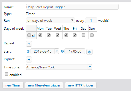 The test result is exactly what we want, so we can define a new trigger to execute the service every day after the close of business hours: