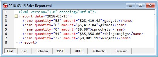 Here is the email attachment viewed in a window in the Altova XMLSpy XML Editor: