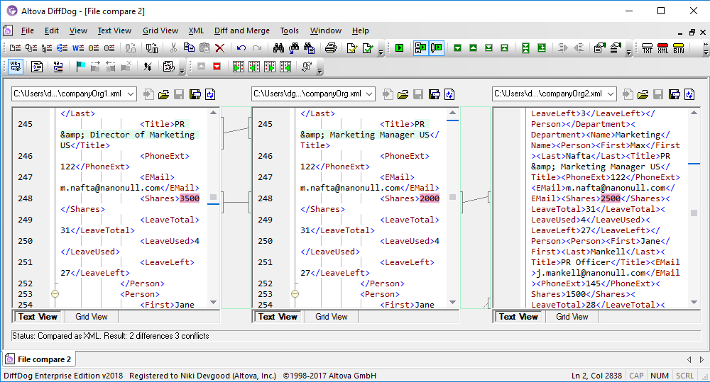 Here is a partial view of the XML result file for the 3-way comparison shown above: