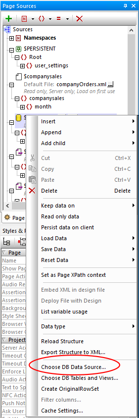 Step 2 - From the Page Sources pane, right click on the database connections ($DB!) and selected "choose database source" from the dropdown menu.