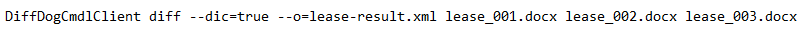 This command executes the DiffDog Server Command Line Client, requests the comparison, stores the result in a diff report file in XML format, and specifies the Word documents to be compared.
