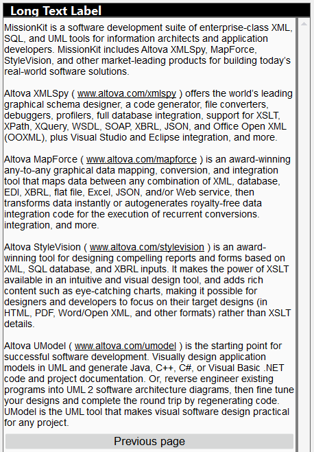 The latest release of MobileTogether, Altova’s low-code, cross-platform mobile development framework, includes support for automatic link detection of URLs and email addresses in labels. Clicking or tapping the link opens the targeted website page in a browser window or as a new draft message in the device's email app in a new window without quitting the mobile app. No further special coding required by the developer.