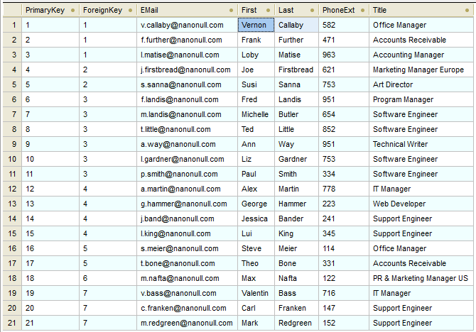 To further validate the result of our example, we can open the database using DatabaseSpy, the unique multi-database query, design, and database comparison tool, and explore the table contents directly: