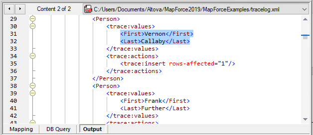 Any output tracing added to a database mapping will also be performed when the mapping is executed in an automated mode by MapForce Server or under control of FlowForce Server. A FlowForce Server job could even automate processing of the output log XML file to create a customized report.