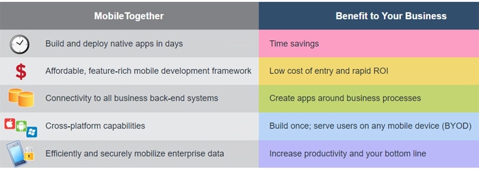 OK, let’s circle back to the five requirements for RMAD tools above, specifically as they apply to the MobileTogether framework: