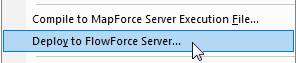 If the test results are satisfactory the mapping and Global Resource can be deployed to FlowForce Server and executed in a FlowForce Server job, perhaps as part of an enterprise scheduled data import operation. The mapping is deployed from the main file menu shown above, via the Deploy to FlowForce Server option: