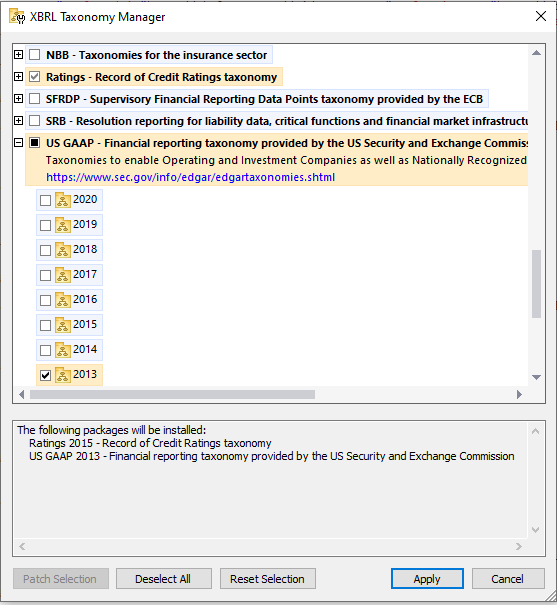 Altova has long provided numerous taxonomies and their various versions in a free installer package. To make the process easier and more efficient, Version 2021 includes a XBRL Taxonomy Manager that provides a centralized way to install and manage XBRL taxonomies for use across all Altova XBRL-enabled applications.