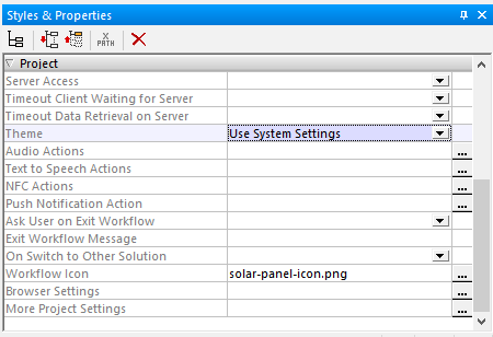 Every component of the app is highly customizable, but by default elements like colors for text, buttons, rules, borders, and even window backgrounds are all implemented in system defaults for each device. The MobileTogether Designer includes a Styles helper window where developers can specify overall project settings, including a setting for Light or Dark Theme.