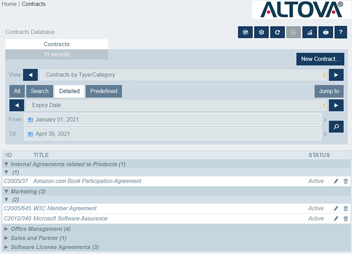 Altova is here to help you with the migration. We will work with you and take your existing setup and move it to ContractManager for free. We use our tools to find the data in your system and import it into ContractManager. Of course, if you have people familiar with MapForce and XMLSpy, then you can do it yourself. We will be here to help in case of snags. We can match your existing system to the new one. From there, you may want to add categories and move some data around. We are there to help you set up the structure. The transition will likely require a review of your records and general “clean up,” but the stressful technical part will likely be done for you.