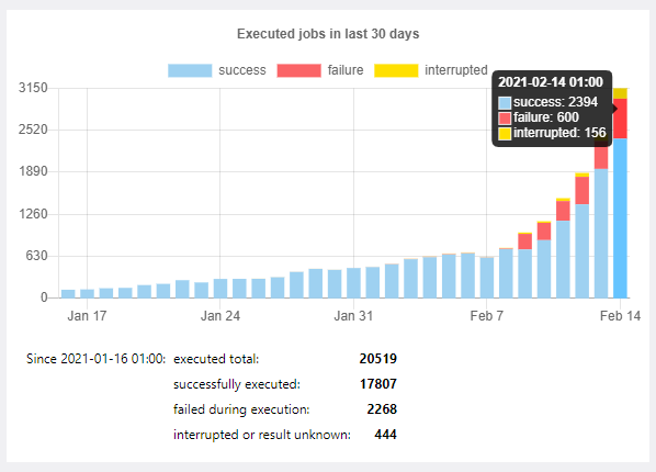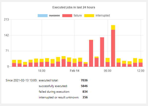 You can zero-in on the data you want to monitor, for instance, by turning off the jobs that succeeded to view those that failed during execution or were otherwise interrupted. To switch a stat on or off, simply click on its label in the chart.