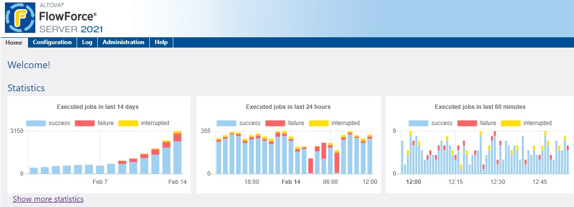FlowForce Server includes a helpful web interface for managing and monitoring all aspects of data processing jobs, including in-depth logging functionality and a complete visual dashboard. Let’s take a look at how you can take advantage of FlowForce charts and statistics to monitor the progress of FlowForce Server jobs, as well as performance of the server itself, in great detail.