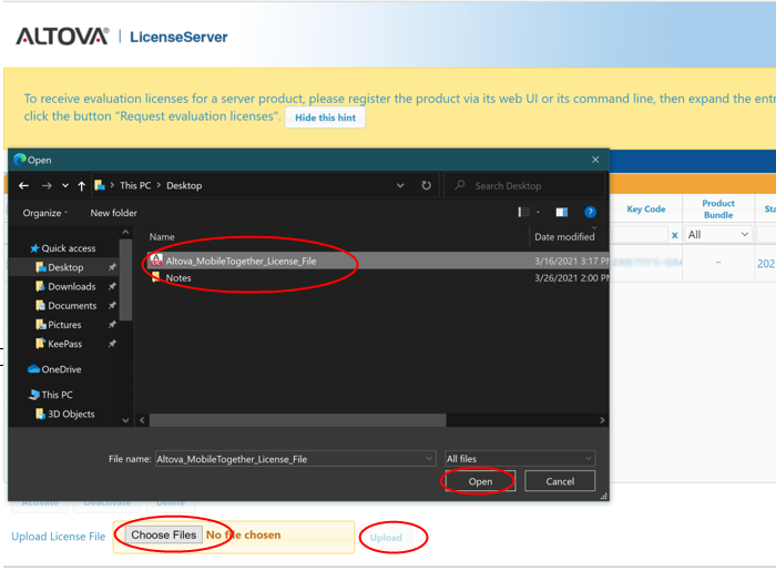 I received a new Altova License file to replace the expiring license via email and downloaded the license file to my desktop.