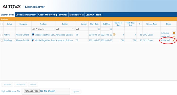 Now when we clicked on the License Pool tab we can see that the pending license is now “assigned” to our client. And once the old license expires the new pending license will automatically change over to active with no interruption in service.
