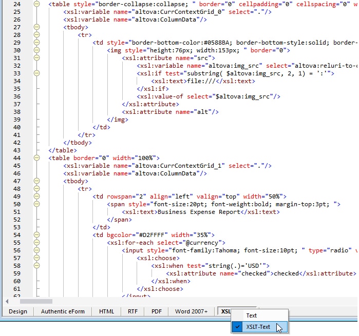In addition to rendering text output directly in StyleVision, the software also generates an XSLT stylesheet that can repeat the XML to text transformation for recurrent projects.