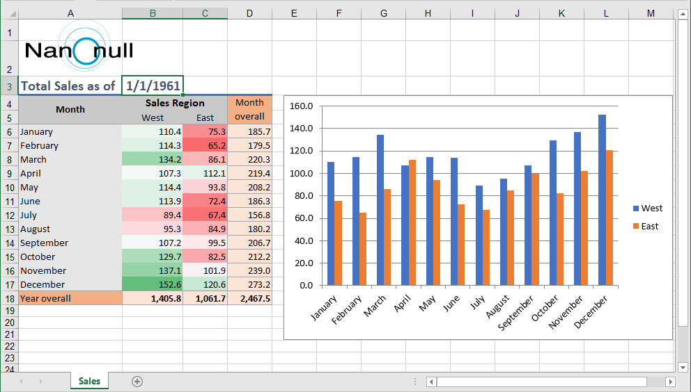 After editing the source data to simulate sales during a year-to-date period, we can re-execute the mapping to see the updated report: