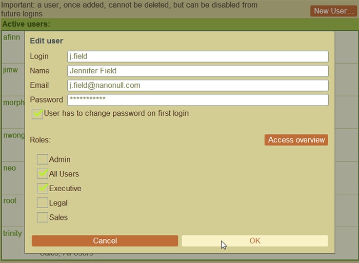 You can define as many or as few users, roles, and user groups as are required by your particular app. When adding a new user or editing details for an existing user, it’s easy to assign the relevant roles.