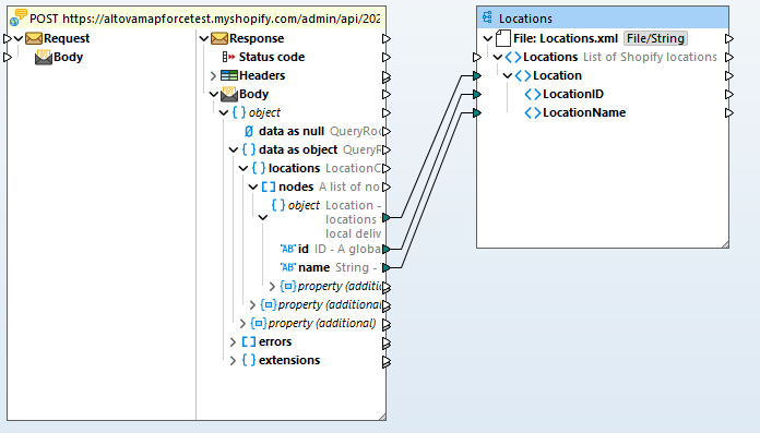 To fill the table of locations for a Shopify store, we will use a MapForce mapping to query all locations.