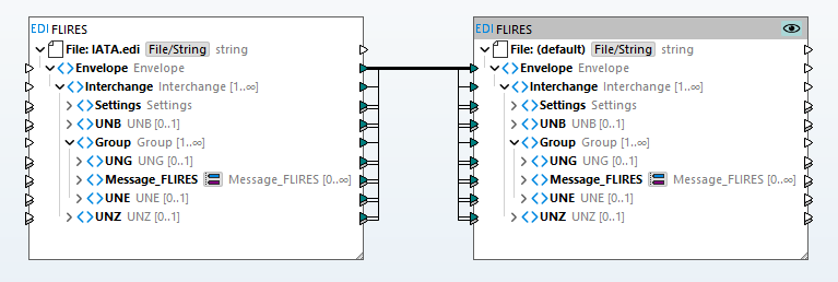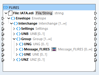 We assign the IATA.edi file as our source document and the EDI message appears in the main mapping pane in a graphical component that reflects its structure: