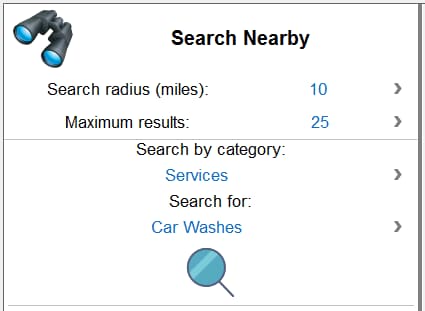 - The magnifying glass tool opens a new page, interfacing to the MapQuest Search and Place Search APIs to offer the user two different search options.