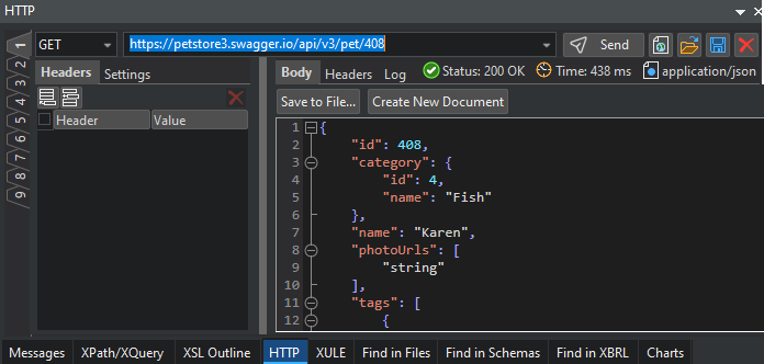 XMLSpy includes a helpful HTTP Testing Window that guides you through the process of creating and sending an HTTP request to a web server or API. Then, you can receive, check, and troubleshoot the response directly in the window.
