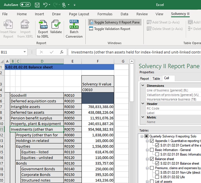 This Altova XBRL add-in for Excel targets Solvency II, a set of guidelines and XBRL reporting regulations from EIOPA (European Insurance and Occupational Pensions Authority) for insurance and reinsurance companies. Like the EBA XBRL add-in for Excel, it lets users work in Excel to generate valid XBRL and also to import existing XBRL reports to Excel.