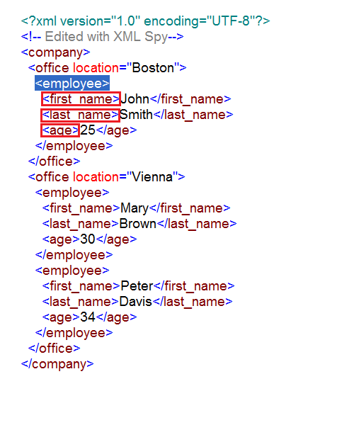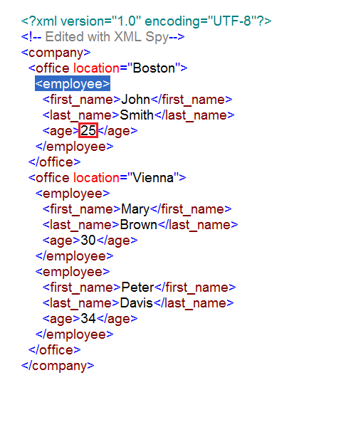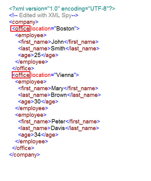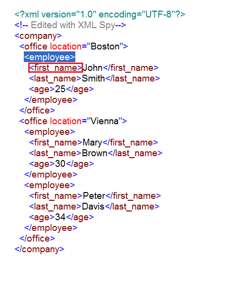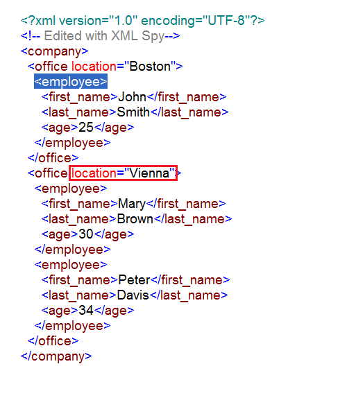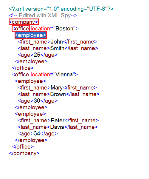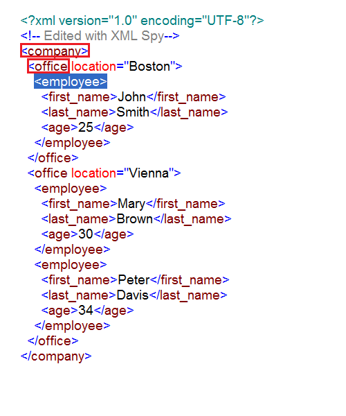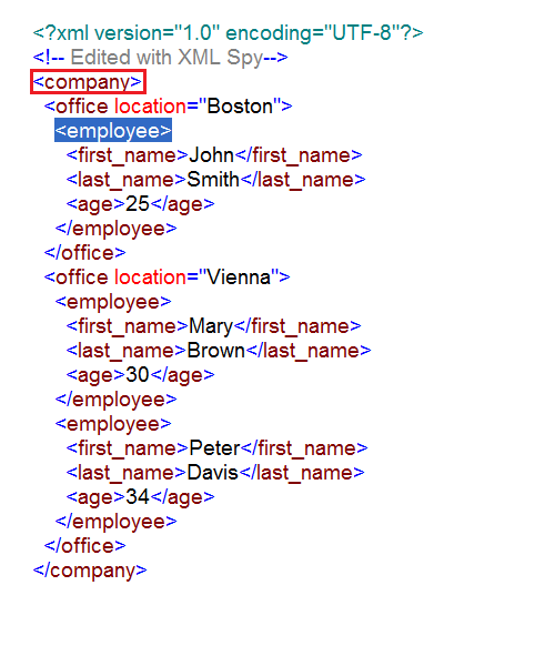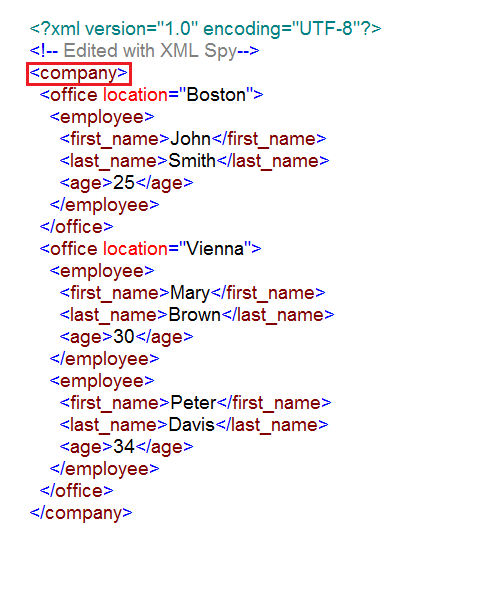 This XPath expression selects the 'company' element node which is a child of the document root. In this XML document 'company' is the root element. The root element is the top level of the element hierarchy in the XML document, i.e. it contains all other elements and attributes in the XML document. The document root is not to be confused with the root element.
