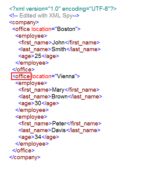 This XPath expression selects the second 'office' element which is a child of the 'company' element, which in turn is a child element of the document root. The square brackets indicate a predicate which is used to filter sequences (in this case the sequence of 'office' nodes).'[2]' is short form for '[position() = 2]'.