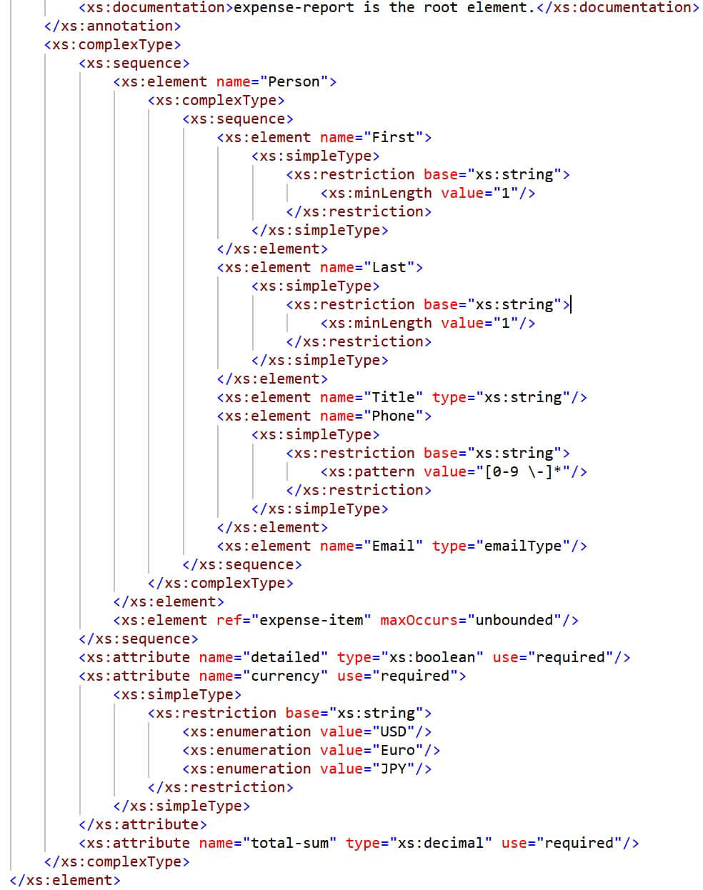 And that’s before you check well-formedness and validation and discover you’ve made a mistake somewhere in 200 lines of XSD code. Finding and fixing that mistake means reading through dense XML again, trying to understand the logical structure beneath the syntax.