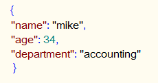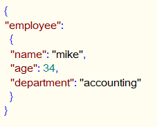 • The JSON data in this example consists of a map containing key / value pairs for name, age and department.