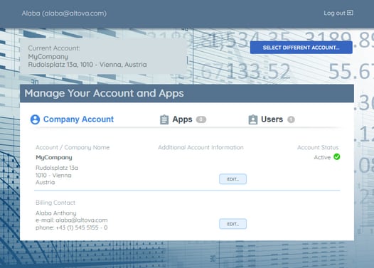 •When a user logs in to the Altova Cloud Portal, all the accounts of which they are members or administrators are displayed on the Select an Account page