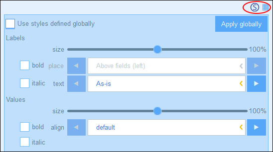 •If you select the Use global styles check box at the top of the table, then the global styles specified in the app's settings will be used.