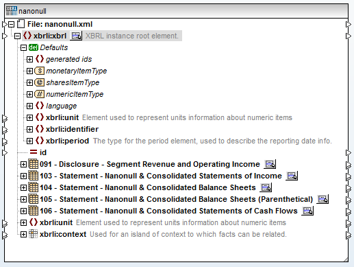 The value of the attribute id of a specific context in an XBRL instance is the value of the attribute contextRef in each related XBRL concept. MapForce automatically numbers all created contexts in an output instance.