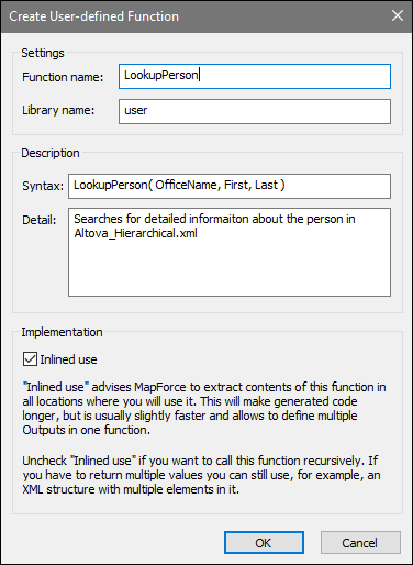 •Inlined use: Select this check box if the function should be created as inline. For more information, see Regular vs. Inline UDFs below.