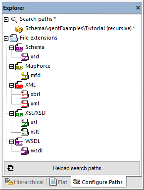 In this section, you will configure a path to the folder that contains the files used in this tutorial. SchemaAgent Client displays the search paths in the Hierarchical and Flat tabs of the Explorer window.