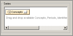 To select items for the Series Axis, first drag a component from the Available pane into the Series pane. (In the screenshot below, the Concepts component has been dragged to the Series pane.) Then click the Ellipsis icon