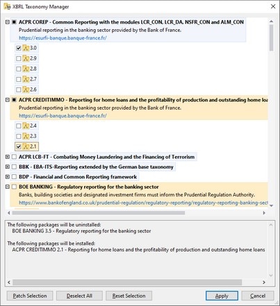 •Via the .altova_taxonomies file downloaded from the Altova's XBRL Taxonomy Download Center: Double-click the downloaded file to run the Taxonomy Manager GUI, which will be set up to install the taxonomies you selected (at the website) for installation.