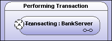 A hyperlink icon automatically appears in the submachine. Clicking it opens the referenced state machine, "BankServer" in this case.