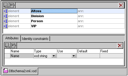5.In the DB Import Based on XML Schema dialog which pops up, go to the Tables tab, select one or more tables you wish to import (for example, Altova), then click Import. The table is imported into an XML document that is displayed in Grid View.
