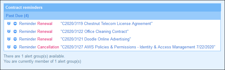 Due reminders are displayed at the bottom of the Home Page (see screenshot below). (See Status of Reminders below for the meaning of due reminders.)
