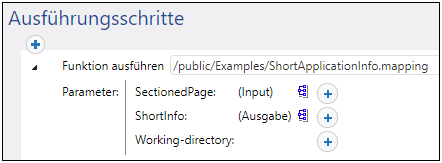 Nachdem Sie das Mapping auf FlowForce Server bereitgestellt haben, wird der Browser geöffnet und die Auftragserstellungsseite wird angezeigt. Wie unten gezeigt, wird der erste Ausführungsschritt automatisch erstellt. Damit wird die zuvor bereitgestellte Mapping-Funktion aufgerufen. Beachten Sie, dass der Input-Parameter denselben Namen wie die MapForce-Quellkomponente (SectionedPage) hat, während der Output-Parameter denselben Namen wie die Zielkomponente (ShortInfo) hat.